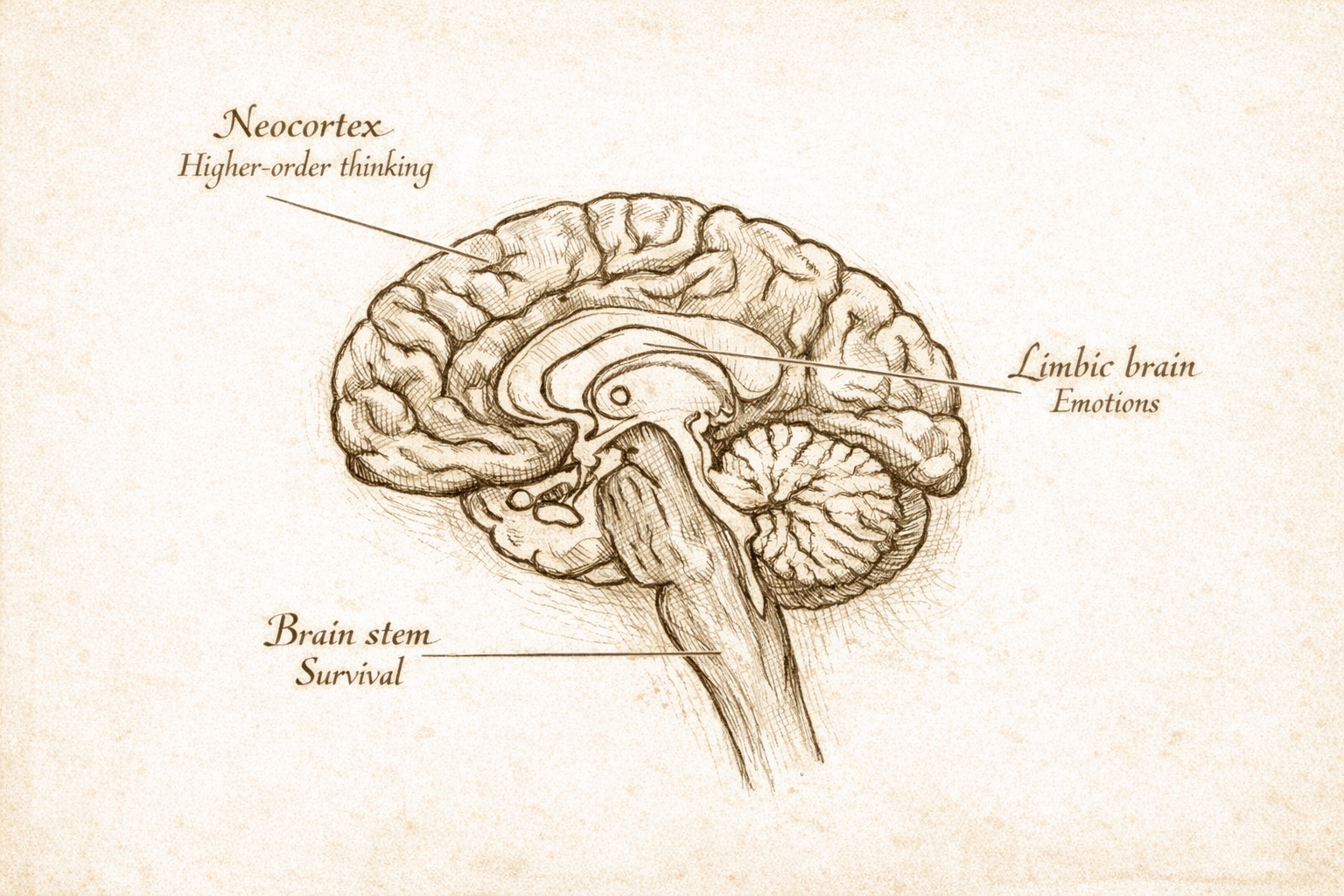 The brain makes decisions in a specific sequence — primal, emotional, then rational.